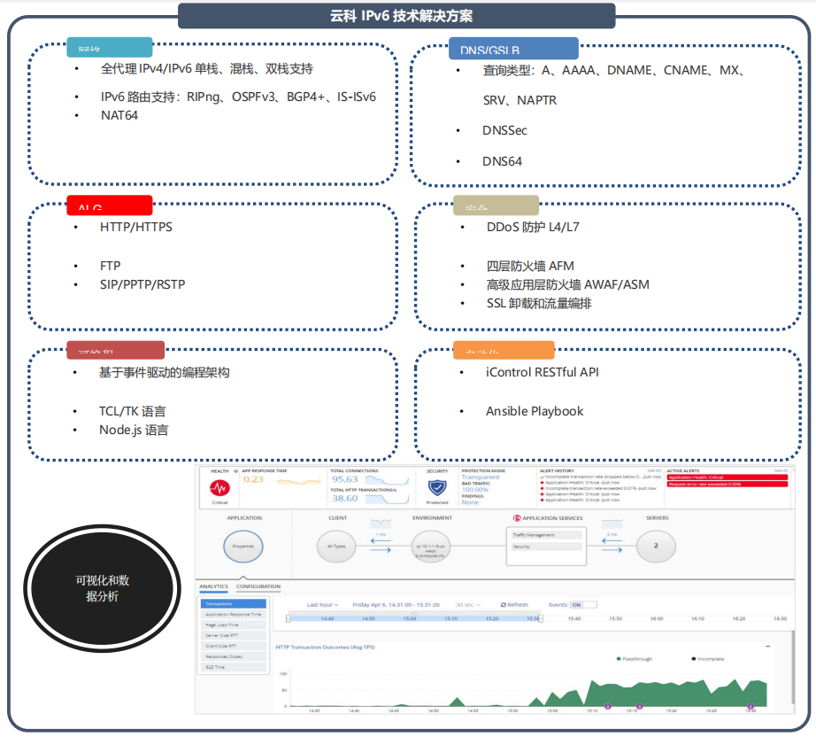 全球范圍內(nèi)支持無線和互聯(lián)網(wǎng)的設(shè)備日益增多,導(dǎo)致 IPv4 地址快速耗盡。與此同時,IPv6 的普及速度比預(yù)計的要慢。服務(wù)提供商需要一款解決方案,幫助他們應(yīng)對 IPv4 地址耗盡的問題,并基于無縫遷移到 IPv6 以實現(xiàn)網(wǎng)絡(luò)優(yōu)化。通過提供大量的IP地址轉(zhuǎn)換、快速的NAT 轉(zhuǎn)換率、高吞吐率能力和高速的日志審計功能實現(xiàn)運(yùn)營商級平臺的可擴(kuò)展性。